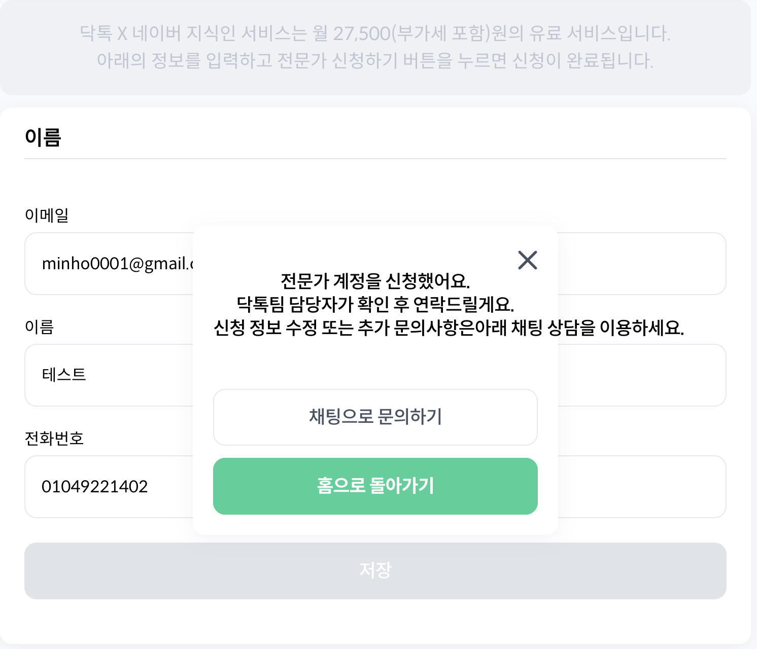 질문 테스트 내용