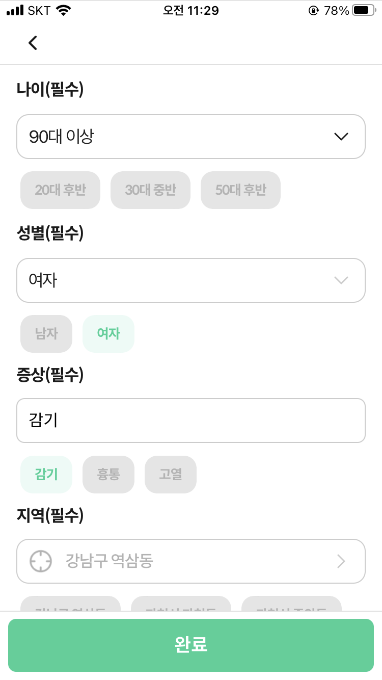 수정 확인 (강남구 역삼동 90대 초반/여 감기)